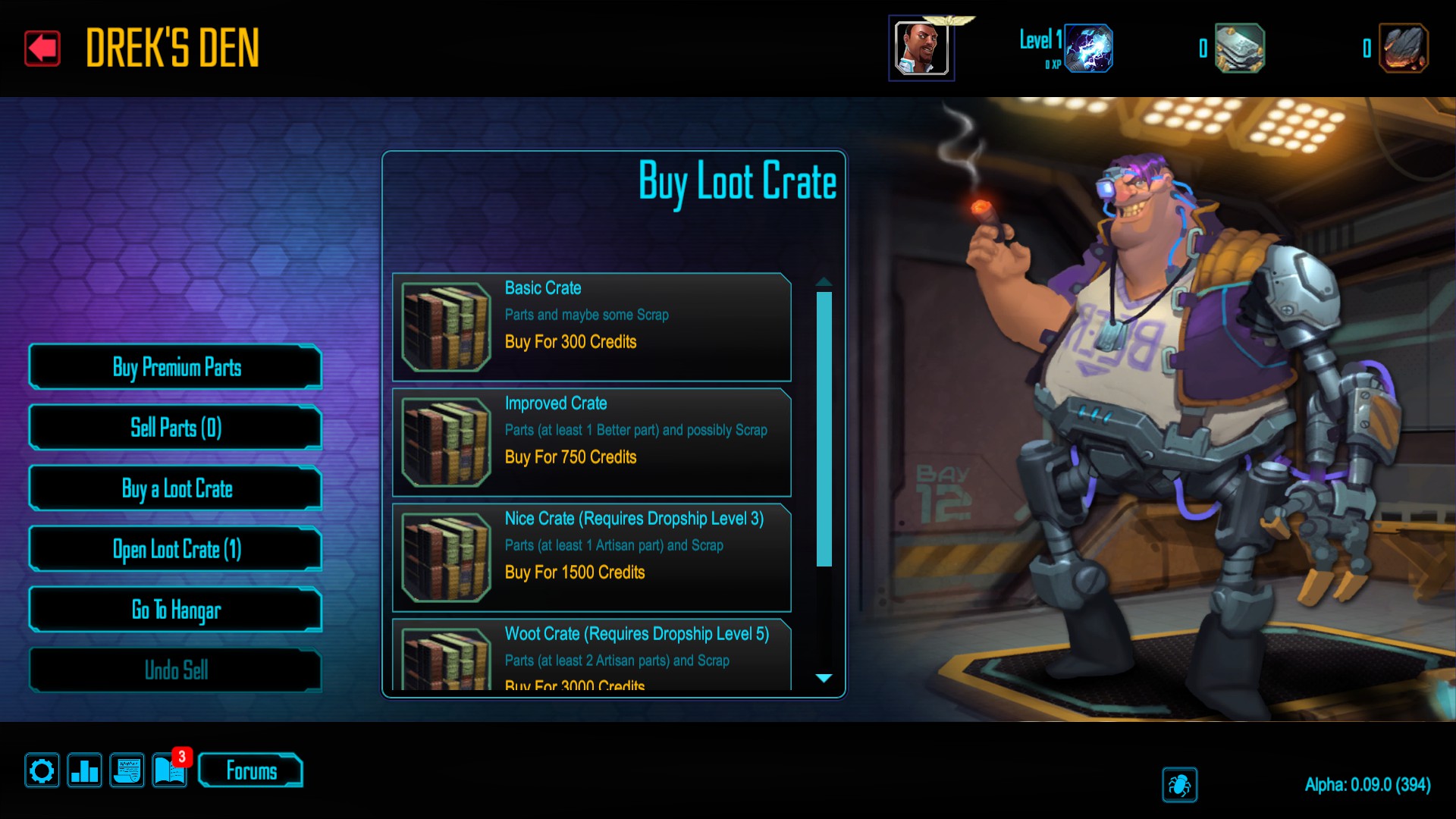 Drek’s Den is the game’s store. It’s not really fully fleshed out yet – players gain Credits and Scrap as they play both single player and multiplayer as currency to use in the game’s store. Credits are presumably the ‘normal’ currency, and are used to purchase ‘crates’ of random parts for Servos, while Scrap is used to purchase specific items out of a rotating but short list of discrete items that tend to be of higher quality. It should be noted here that items are also earned when a player finishes any mission, be it single player, campaign, co-op or PVP.