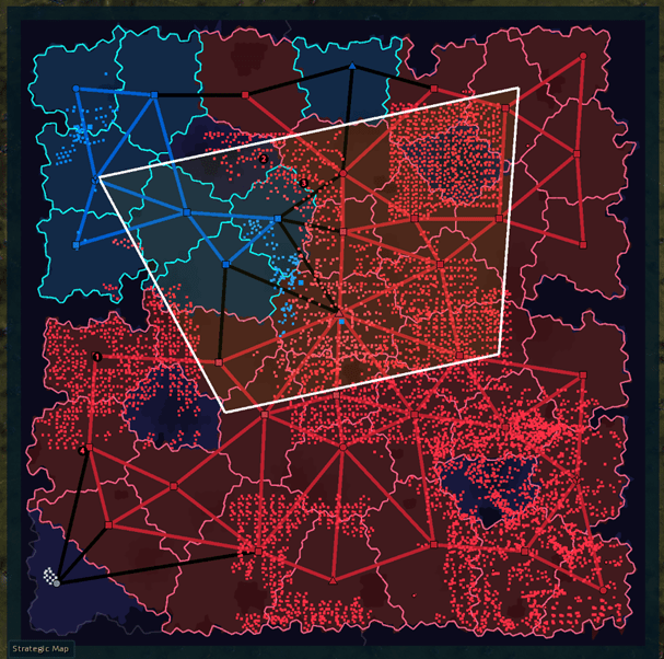 This is our ugly situation map. It’ll get a big overhaul before release. Each dot is a group of units.