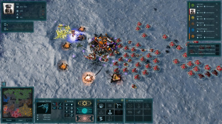 You play as the Substrate faction, which got a bunch of new units in a recent update, and you’re given regular infusions of large groups of those units as you fight against 5 aggressive AI opponents all playing the PHC, whose new units are mostly or entirely comprised of a bunch of new turrets.