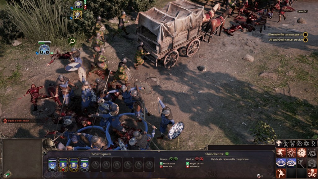 In a lot of ways, it feels mechanically and functionally akin to unit maneuvering in Warcraft 3: running a squad out of melee then ducking them back in to maintain their DPS and allow another target to start soaking up damage. But in Ancestor’s Legacy, there’s the benefit of having a consistent system for getting the most out of squads, as well as the advantage of being able to re-engage and use those on-approach abilities again.