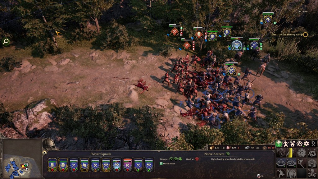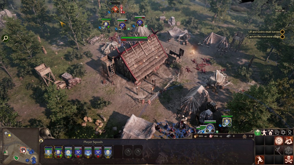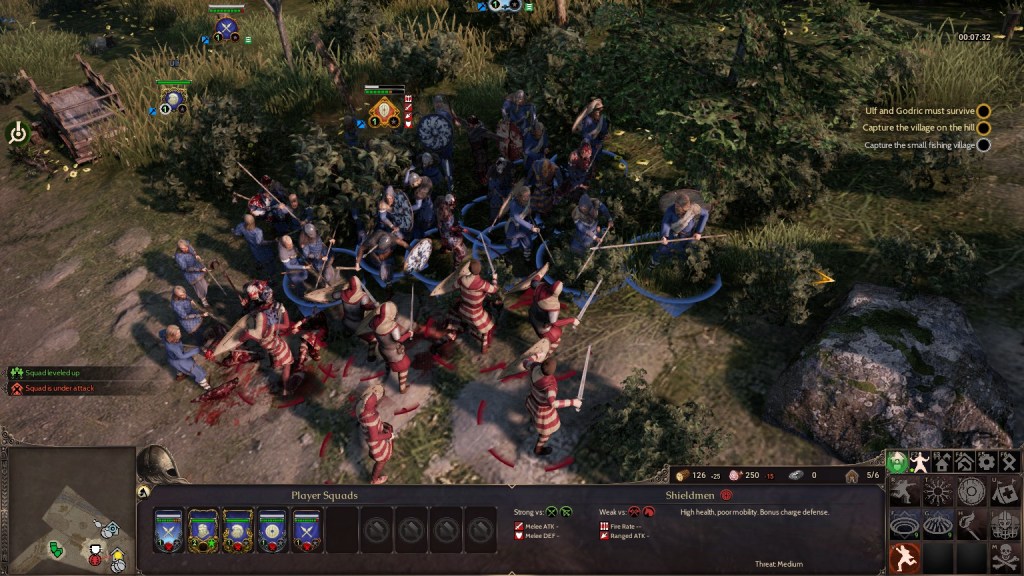 Maps are a bit large for the number of squads you can field, making things drag on a bit. There are a couple of rough edges where the more serious, grim systems bang up weirdly against more game-y systems. Resource harvesting feels a bit over-automated since you don’t do much besides build the harvesting camps to let villagers take care of it for you. I feel almost hypocritical for not minding the automated nature of harvesting, since I knocked Grey Goo and Act of Aggression for their highly automated workers: maybe it works better because Ancestor’s Legacy is a more tactical game? Maybe it works better because of how tightly thematic is it? You got me.