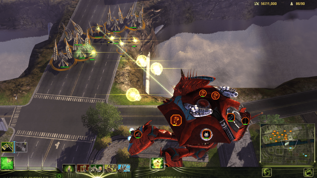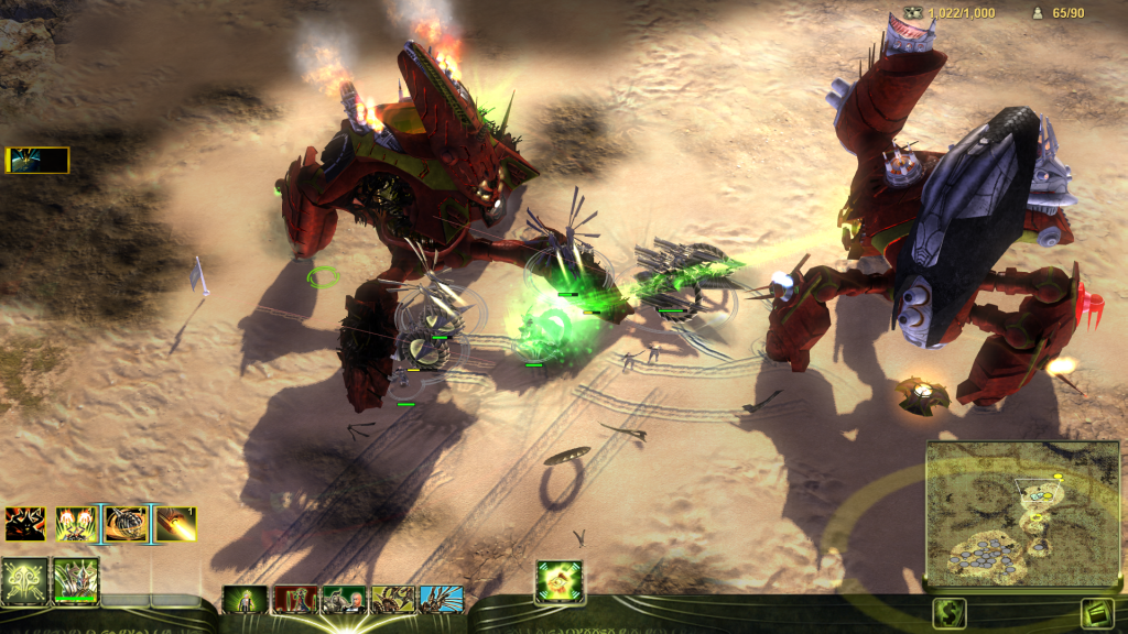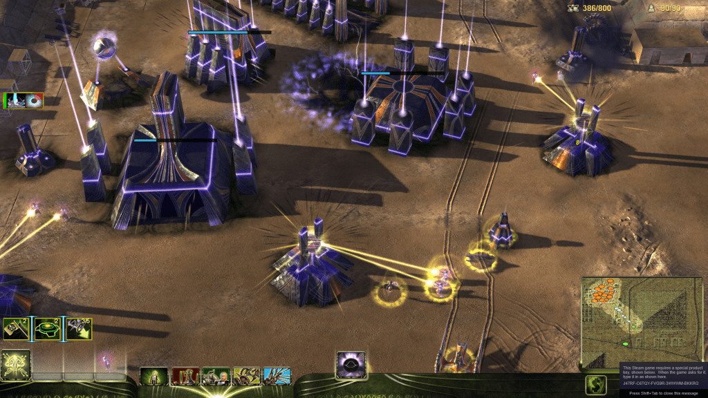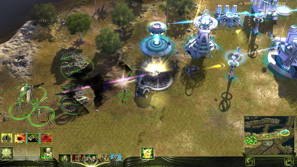 Units tend to be satisfyingly chunky, which allows for tactical gameplay that still feels skill-based even with the smaller number of units. It has a good mix of support powers/superweapons, and one of my favorite research systems in the genre (though its sister game Grey Goo has one that might be better).