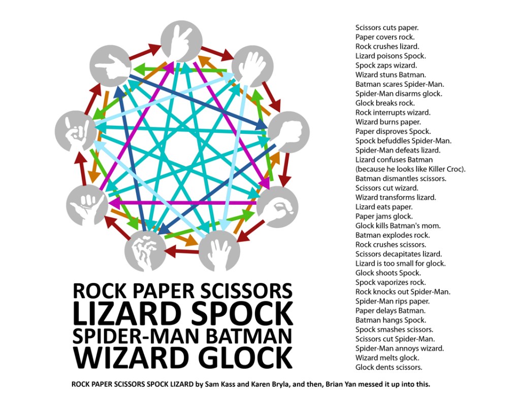 So, in the classic kids’ game “Rock, Paper, Scissors” you have these 3 binary relationships you’re dealing with. I won’t go into it because I assume that’s common knowledge and if it isn’t, Google it I suppose? Often, hard counter systems are called “Rock, Paper, Scissors” or RPS systems. I have a bit of a quibble with this.