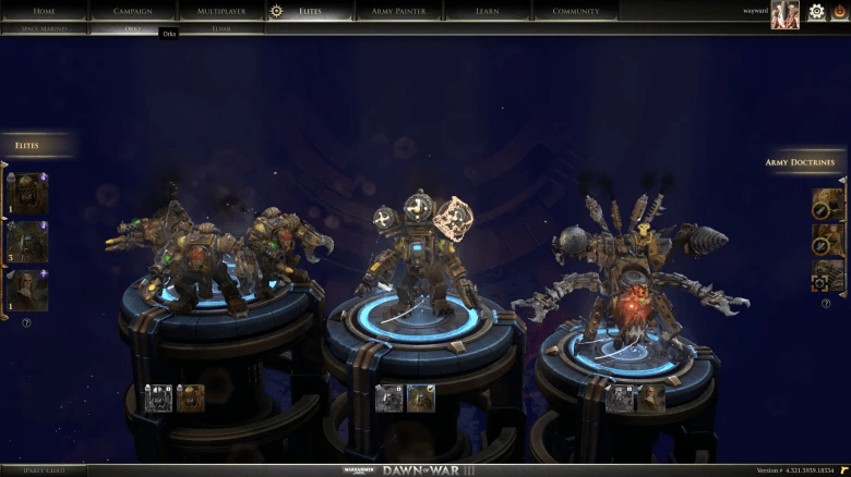 In Dawn of War 3, the player chooses 3 Elite units and 3 Army Doctrines to create a ‘loadout’ of options to bring into a match.