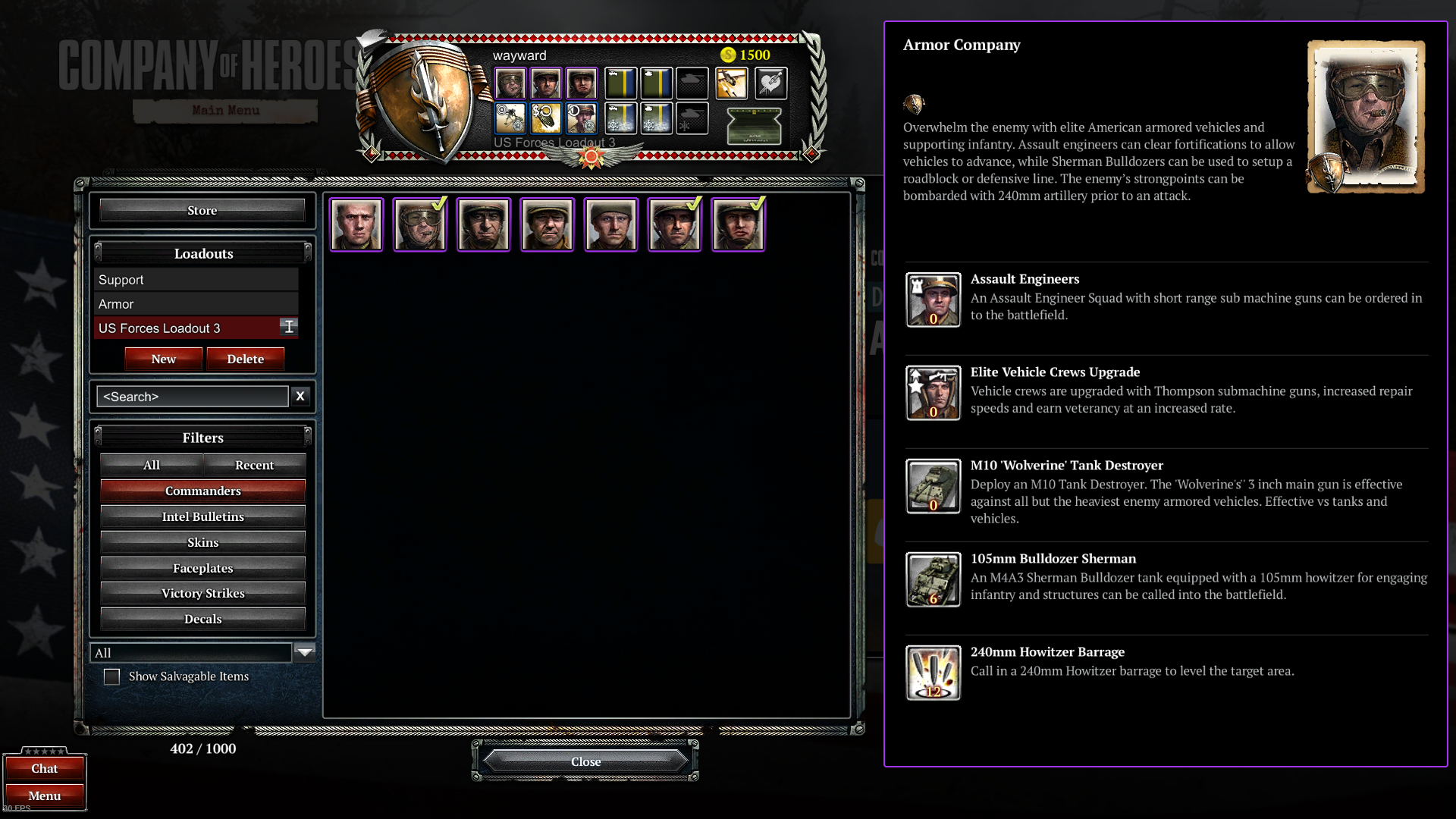One other advantage of loadout systems vs something more expansive like a deck of units is clarity of choices presented to the player. While a Hearthstone deck might have 30 cards, and a Magic the Gathering deck 60, and a Steel Division deck is comprised of a large number of activation points, a Company of Heroes 2 loadout provides the player with around… 6 choices. 3 Commanders, and 3 Bulletins. And honestly, the Bulletins are so nominal they’re easy to ignore anyway. Or at least, to set and forget.