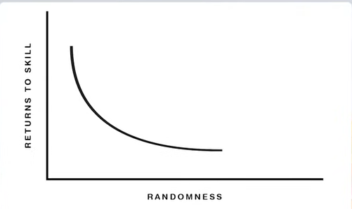 Graph with a curve indicating as "Randomness" increases, "Returns to Skill" decreases.